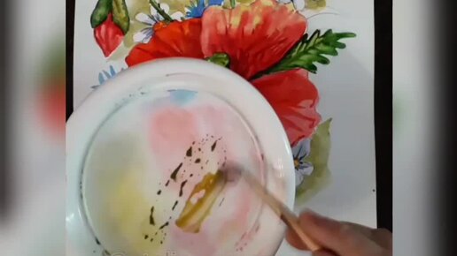 Эксперимент. Маки акварелью на тонкой бумаге.