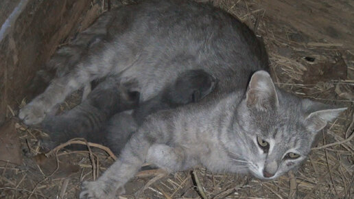 Кошка принесла котят и спрятала. Нашли в сарае с хламом.