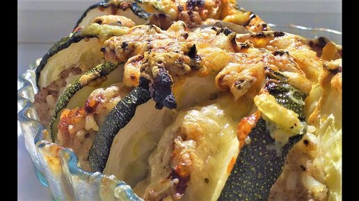 Запеченные кабачки с фаршем и сыром в духовке