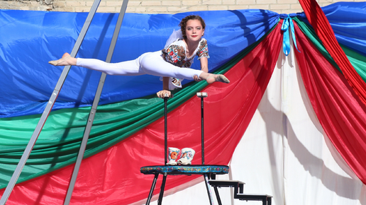 Игривый номер "Валенки". Эквилибр в сочетании с цирковыми катушками. Стойки на руках, ходьба на руках по лестнице, стойка на одной руке.