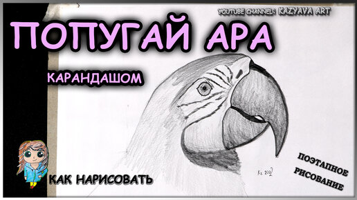 Как нарисовать попугая АРА карандашом. Рисую голову поэтапно.