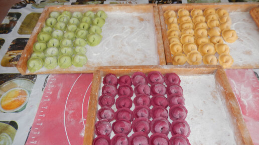 Суперские рецепты. Пельмени цветные. Тесто. Сок из овощей..