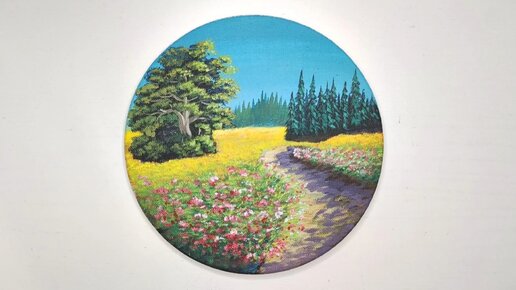 Рисуем летний пейзаж акриловыми красками🌺 // Картина акриловыми красками🎨 // Акриловая живопись🖼️