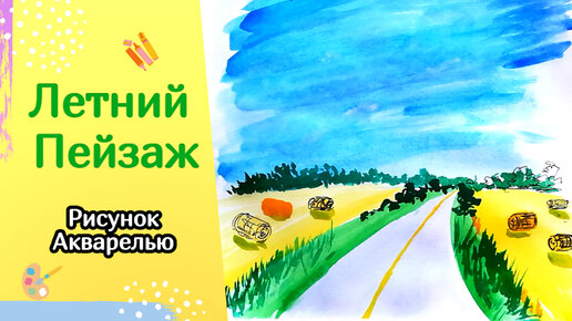 Как нарисовать Летний пейзаж | Дорога через поле | Рисование акварелью
