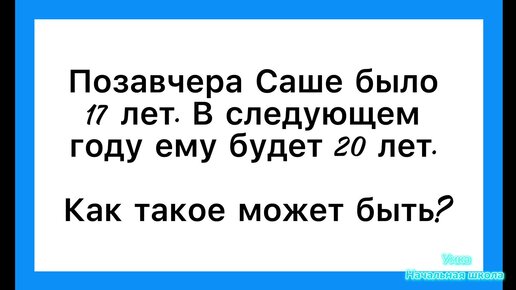 Задача на логику / Позавчера Саше было 17 лет в следующем году будет 20 лет / логические задачи для ума