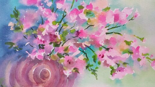 Розовые цветы - акварельный мастер-класс для начинающих.