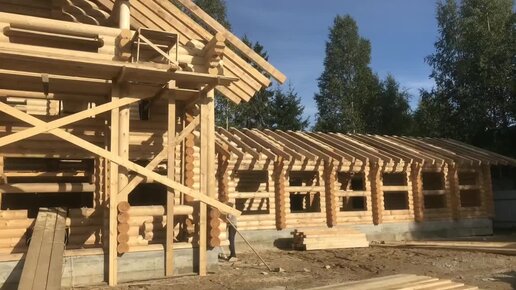 Баня с бассейном из оцилиндрованного бревна