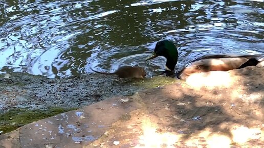 «Делай, как я, посмотри на меня»: Водяная крыска наблюдает за уткой🦆