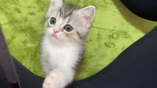 Вот котенок, который приходит в дом и играет со слугой через 2 часа