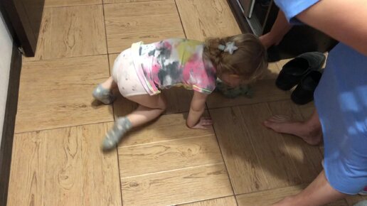 Внучка моет пол помогает бабушке