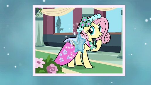 Раскраска Милая Пони Флаттершай в красивом бальном платье. My Little Pony. Обзор игр для детей