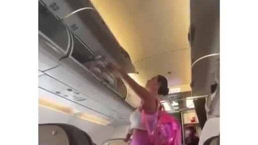 Девушка закрыла полку в самолете