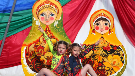 Эквилибр в сфере в ярком номере "Матрешки". Дуэтная акробатика. Поддержки. Прыжковая акробатика.