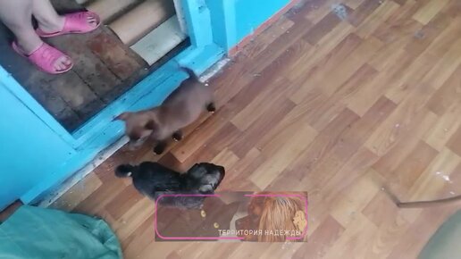 Щенятки резвятся и играют в отремонтированной комнатке на карантине