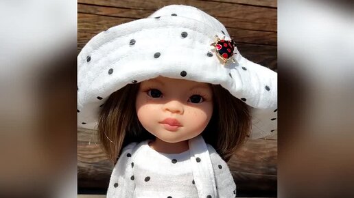 Шляпка, платье Горошек на Паола Рейна 34 см с шарнирным телом.