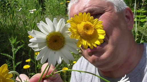 Геннадий Горин на поле. Видео про цветы ромашки. Белая ромашка и жёлтая ромашка