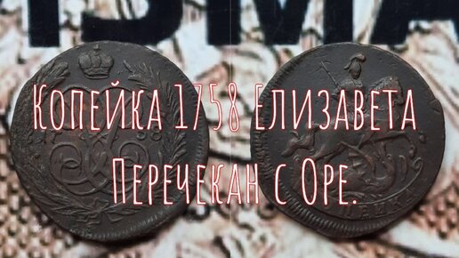 Копейка 1758 год Елизавета Перечекан с Шведской монеты Оре.