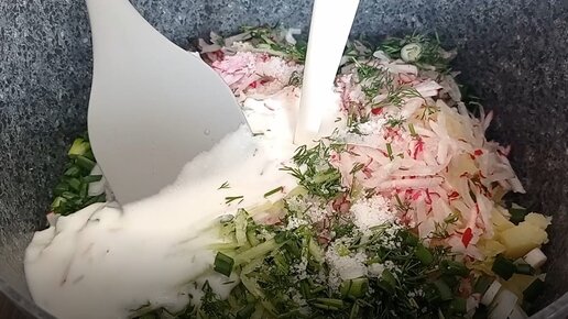 Вкусная окрошка на кефире с минералкой. Простой и быстрый рецепт в жару.