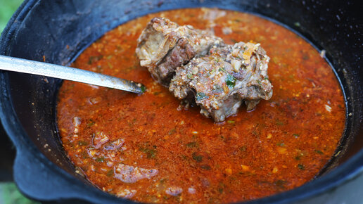 Показываю как приготовить грузинский пряный суп харчо в казане(делюсь хорошим рецептом)