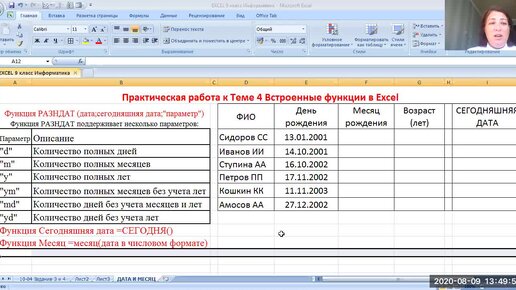 EXCEL Функции СЕГОДНЯ МЕСЯЦ РАЗНДАТ Коренюгина ЛМ
