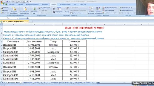 EXCEL Поиск информации по маске Коренюгина ЛМ