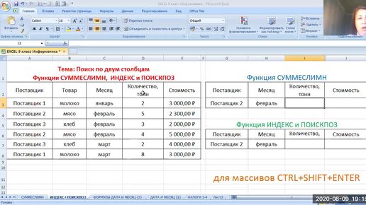 EXCEL Поиск Функции СУММЕСЛИМН ИНДЕКС ПОИСКПОЗ УМНАЯ ТАБЛИЦА Коренюгина ЛМ