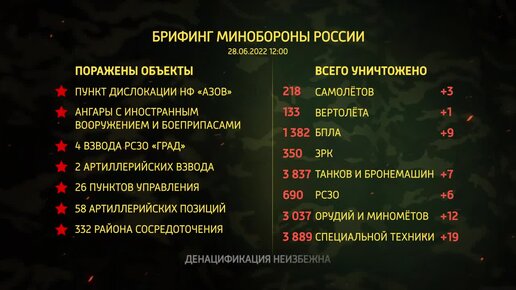 Брифинг Минобороны России на 28.06.2022