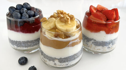 ОВСЯНКА на ночь / ПОЛЕЗНО и вкусно 👍 / 3 варианта завтрака
