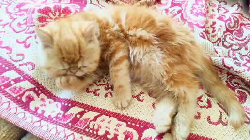 Котик-экзотик тщательно вылизывает свои лапки
