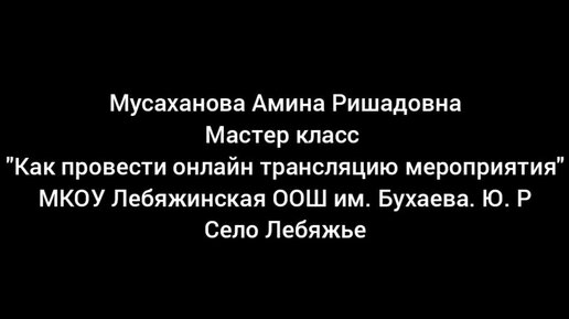 Мастер класс "Как провести онлайн трансляцию мероприятия"
