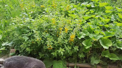 Один серый, другой белый вышли погулять. Поросёнок на клумбе.
