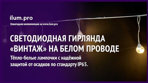 Светодиодная гирлянда с лампочками «Винтаж» тёпло-белая, 10 м, 220 В, IP65, белый провод / Айлюм Про