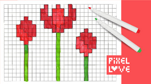 PIXEL LOVE. Рисунки по клеточкам для детей.