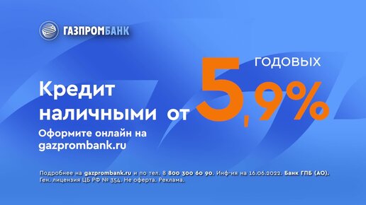 Ставка от 5,9% и сумма до 5 млн рублей: горячее предложение по кредиту наличными от Газпромбанка