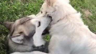 Верная дружба двух друзей маламута и шотландской овчарки Собачьи игры