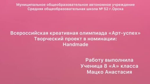 Арт успех I HandMade I Региональный этап I Мацко Анастасия 8"А"