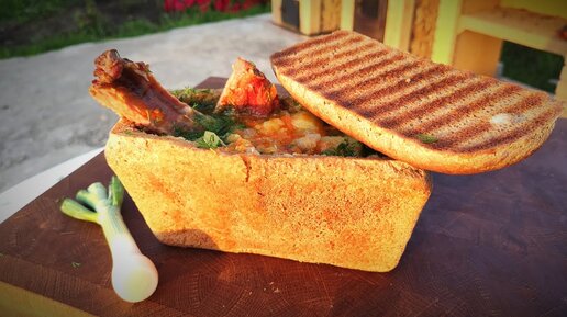 Гороховый Суп с Копчеными Ребрышками в казане.