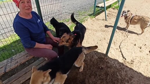 У нее у одной больше всех собак в руке на прогулке в приюте