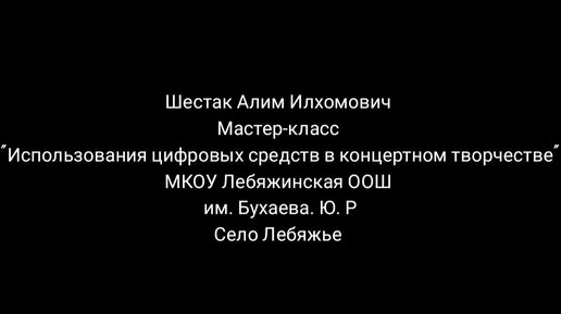 Мастер-класс "Использования цифровых средств в концертном творчестве"