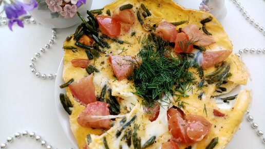Чесночные стрелки с яичком и томатом🥚🍅