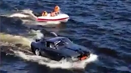 Автомобиль-амфибия: в Санкт-Петербурге Ford Mustang устроил заплыв по Неве
