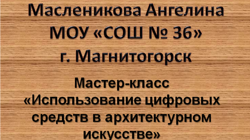 Масленикова Ангелина, МОУ «СОШ № 36», г. Магнитогорск, Мастер-класс«Использование цифровых средств в архитектурном искусстве»