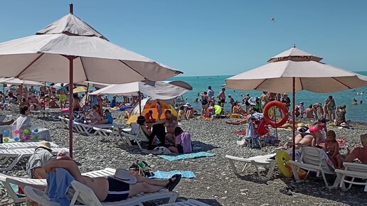 Пляж п.Лазаревской забит полностью, июнь 2022 год,Черное море