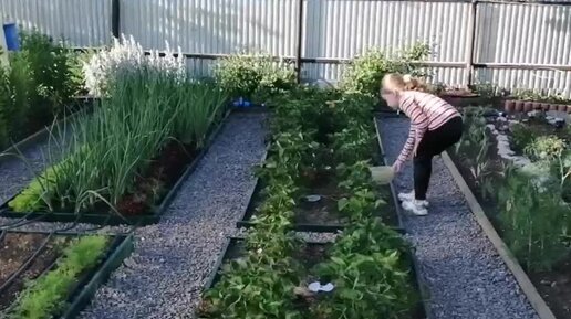 Внучка собирает землянику