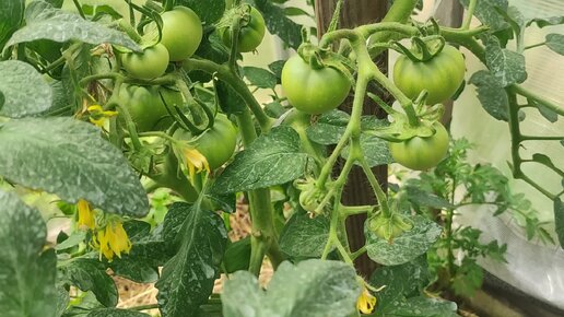 Томатная теплица.Котя, Бабушкино, Зелёная тайна лечинки,Ваше Благородие, Поцелуй, Полосатый шоколад,Миднайд, Мадам Пампадур. 28 июня 2022.