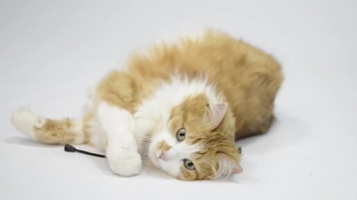 Кот играет с фитомышкой