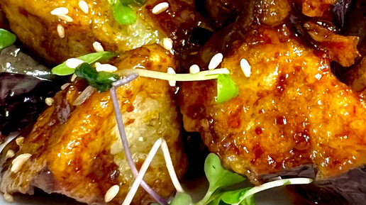 Азиатский салат из баклажанов в хрустящей панировке!