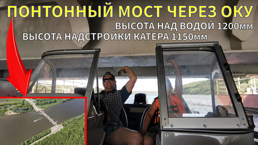 Ювелирный проход катера под понтонным мостом через реку Ока (город Озёры). Высота моста 1200мм, катера 1150мм