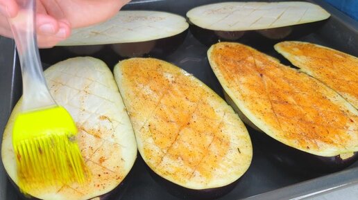Готовлю баклажаны в духовке и подаю с начинкой из сыра, сухарей, приправы и овощей (показываю рецепт приготовления)