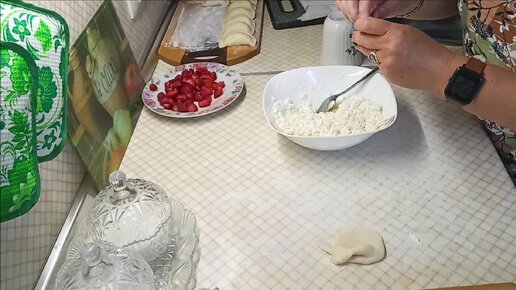 Готовлю любимые вареники, с творогом и клубникой.